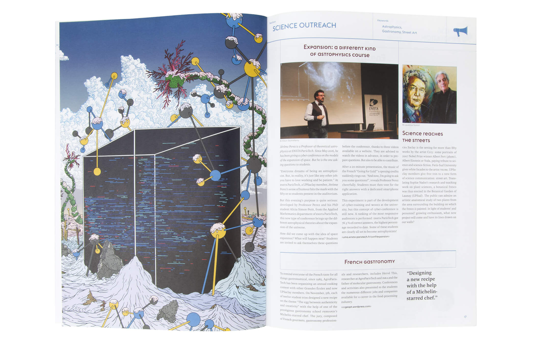 Revue d’information du campus. Le campus Paris-Saclay réunit et met en relation les grandes écoles scientifiques de la région Île-de-France avec des laboratoires, des pôles d’innovation ainsi que des acteurs industriels.